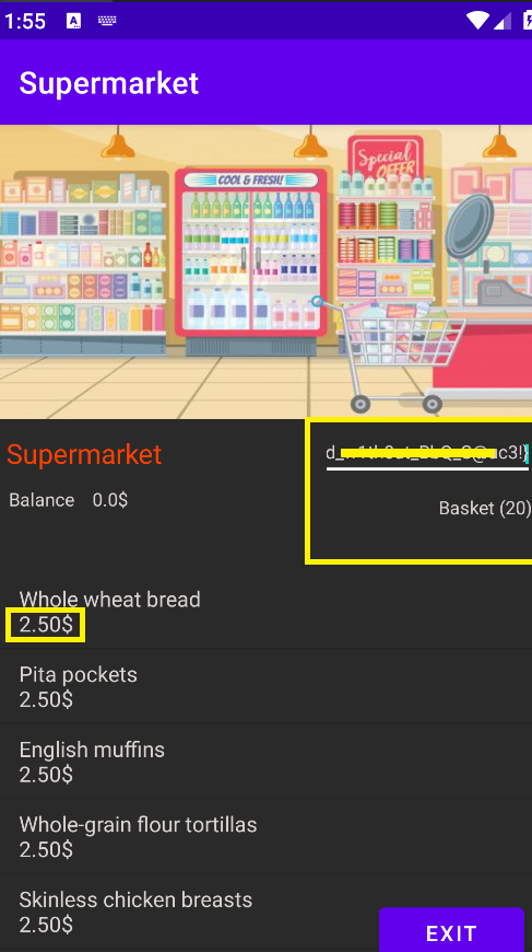 When I opened the application on the emulator, I discovered that it appears to be a market for buying items. There’s a coupon field where you can apply a code for discounts: