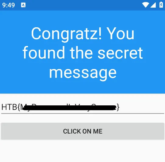Running the script successfully decrypted the flag. I then submitted it through the mobile app and received the Congratz message.