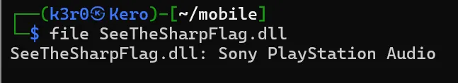command in Kali Linux to inspect its type. Surprisingly, it was identified as a Sony PlayStation Audio file.